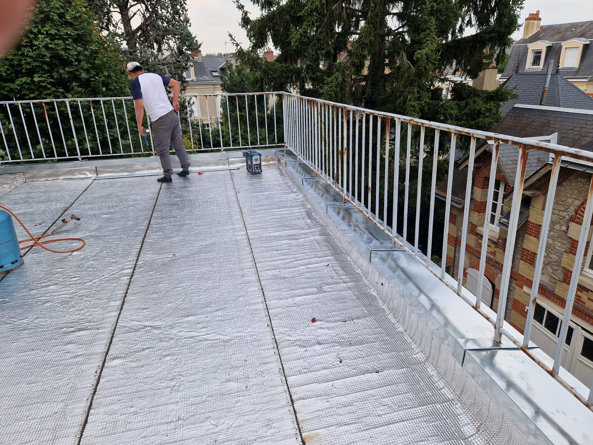 Toit terrasse, pose et habillage zinc sur accrotère et pose membrane au sol à Le Mans (72000). Faites appel à notre équipe pour vos travaux de couverture en neuf et rénovation dans tout le département 72. Intervention 24/24 et 7/7. Déplacement et devis gratuit !